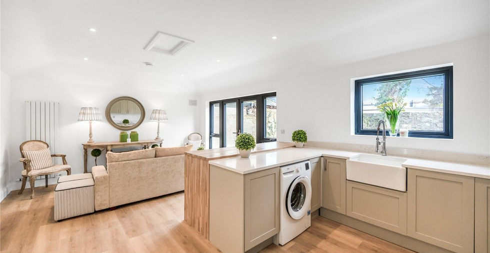 No.2 Railway Cottage is a stunning example of a meticulous refurbishment project where the original charm of the 1920s cottage was reimagined for modern living. The transformation began by taking the property back to its bare bones—leaving only the original front wall intact. From there, we rebuilt the home entirely, doubling its footprint with a new extension that blends seamlessly with the character of the original structure.